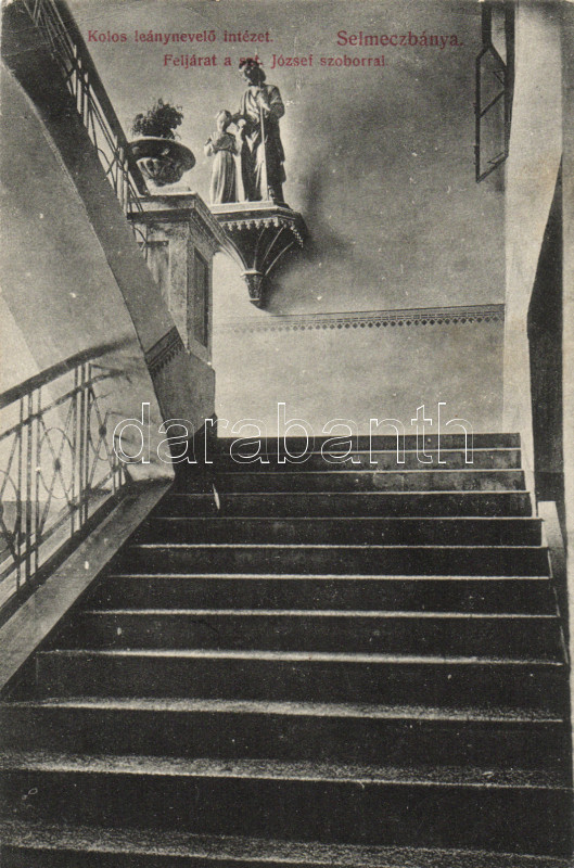 Selmecbánya girl school, St Joseph statue, Divald & Monostory (EB) https://www.darabanth.com/hu/162-Gyorsarveres/162.0/Kepeslapok/Felvidek~500007/Selmecbanya-girl-school-St-Joseph-statue-Divald-Monostory-EB~II522568