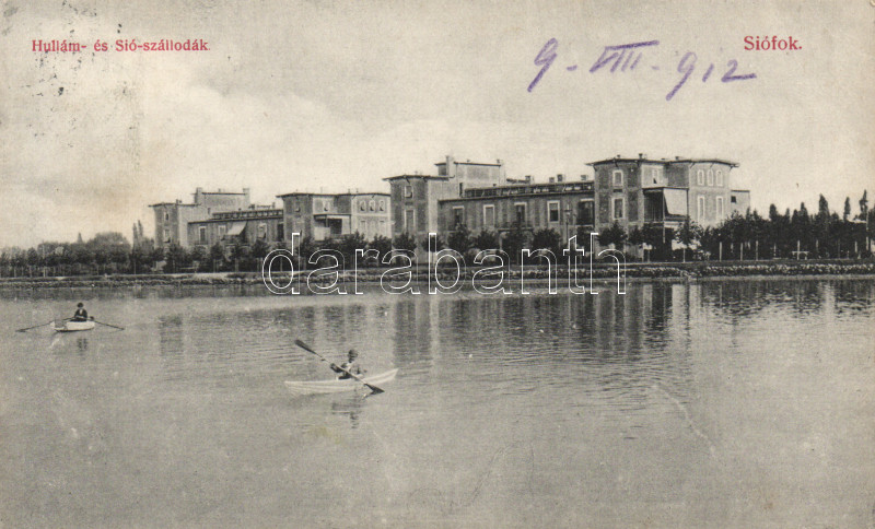 Siófok Hullám és Sió szállodák, Divald & Monostory https://www.darabanth.com/hu/162-Gyorsarveres/162.0/Kepeslapok/Magyarorszag~500005/Siofok-Hullam-es-Sio-szallodak-Divald-Monostory~II526016