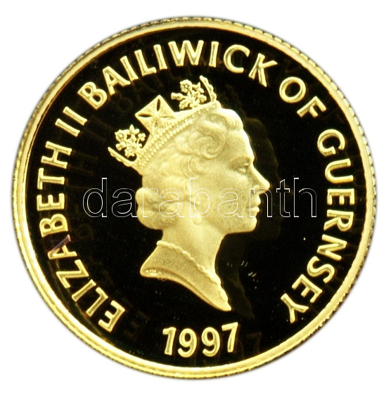 Guernsey 1997. 25 Pound Au(24Carat) "Queen Elizabeth II's Golden Wedding Anniversary" (7,81g) in original case with certificate C:PP only 5000 examples!