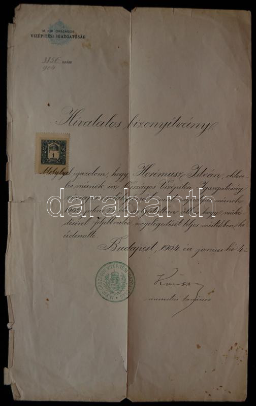 1904 Kvassay Jenő vízmérnök aláírása hivatalos okiraton https://www.darabanth.com/hu/163-Gyorsarveres/163.0/Festmeny-mutargy-papirregiseg-egyeb/Alairas~1600006/1904-Kvassay-Jeno-vizmernok-alairasa-hivatalos-okiraton~II517169