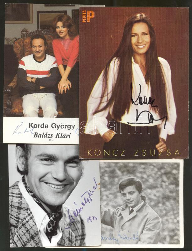 Leírás: 6db fotó aláírással, köztük Koncz Zsuzsáé, Zalatnay Saroltáé, Komár Lászlóé, Korda Györgyé és Balázs Klárié