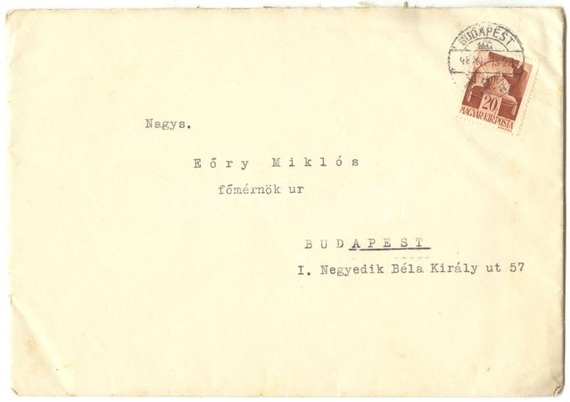 Leírás: Dr. Kubányi Endre egyet. rk. tanár Szent Rókus Kórház-i sebészfőorvos baráti üdvözlő levele nagys. Eőry Miklós főmérnök úrnak aláírásával