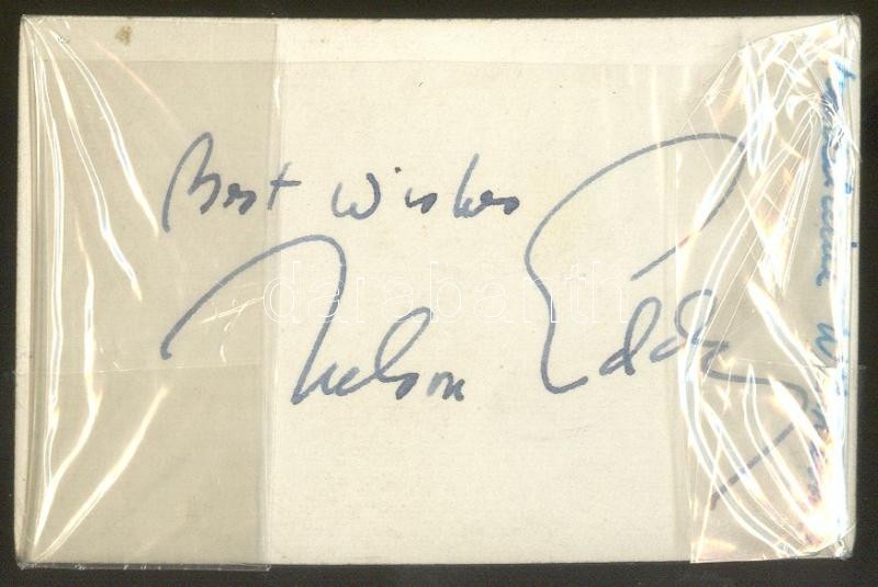 cca 1950 Nelson Eddy színész dedikált fotója / Photo with original aut... https://www.darabanth.com/hu/163-Gyorsarveres/163.0/Festmeny-mutargy-papirregiseg-egyeb/Alairas~1600006/cca-1950-Nelson-Eddy-szinesz-dedikalt-fotoja-Photo-with-original-autograph-of-Nelson-Eddy-5x7-~II533700