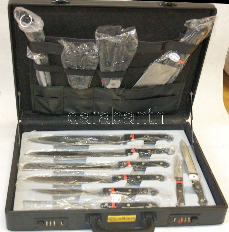 Leírás: 12 darabos, nem használt Solingeni késkészlet eredeti számzáras táskájával / Original unused set of knives