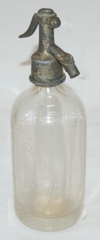 Leírás: "Rákospalota Landstoff György..." feliratú szódásüveg sasfejes kifolyóval