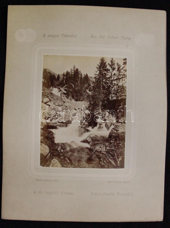 Leírás: cca 1890 Karpatak vízesés Divald Károly nagyméretű fotója kartonlapon. A magas Tátrából sorozat /