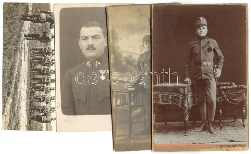 Leírás: cca 1920 4db keményhátú és normál katonai fotó