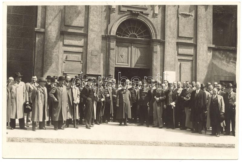 Leírás: cca 1930 HIvatalos ünnepségen készült fotó katonákkal 17x12 cm