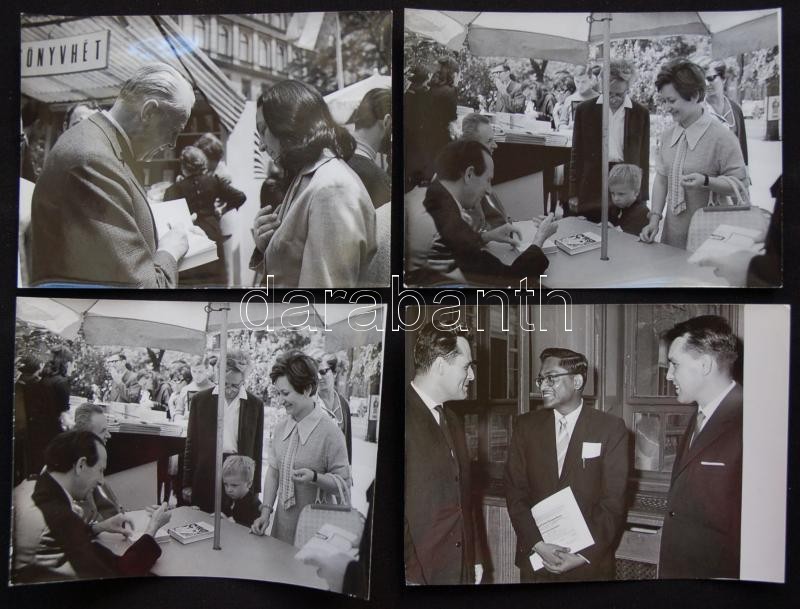 cca 1960 Magyar Könyvhét 22 db sajtófotó írókról költőkről (úgymint Németh László, Heltai Jenő, Illyés Gyula, Juhász Ferenc, és mások), néhány duplummal