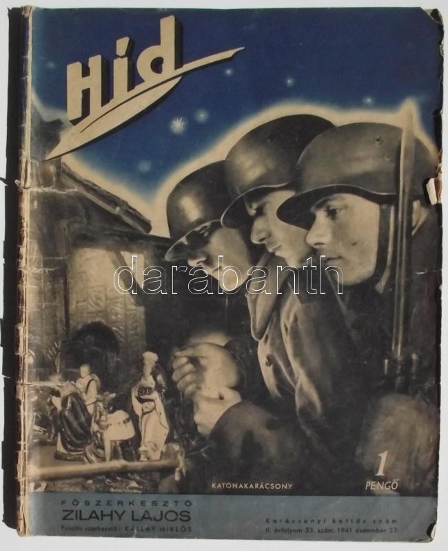 1941 A Híd c. újság karácsonyi száma sok katonai képpel, érdekes cikke... https://www.darabanth.com/hu/163-Gyorsarveres/163.0/Festmeny-mutargy-papirregiseg-egyeb/Nyomtatvanyok~1600026/1941-A-Hid-c-ujsag-karacsonyi-szama-sok-katonai-keppel-erdekes-cikkekkel-szakadasok~II532505