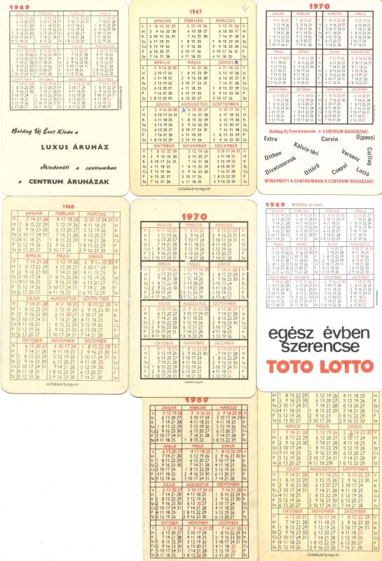 Leírás: 8db klf kártyanaptár a 60-as évekből