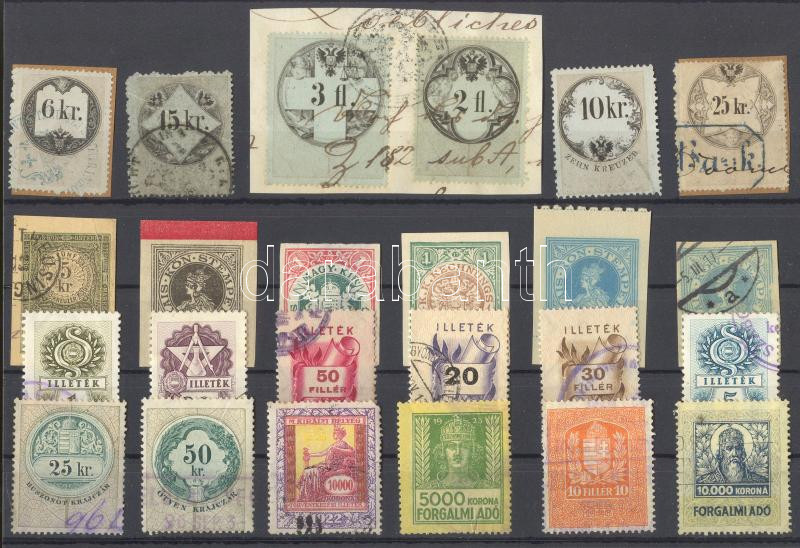 Leírás: 25 db okmány és illetékbélyeg