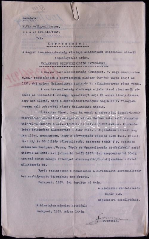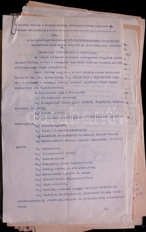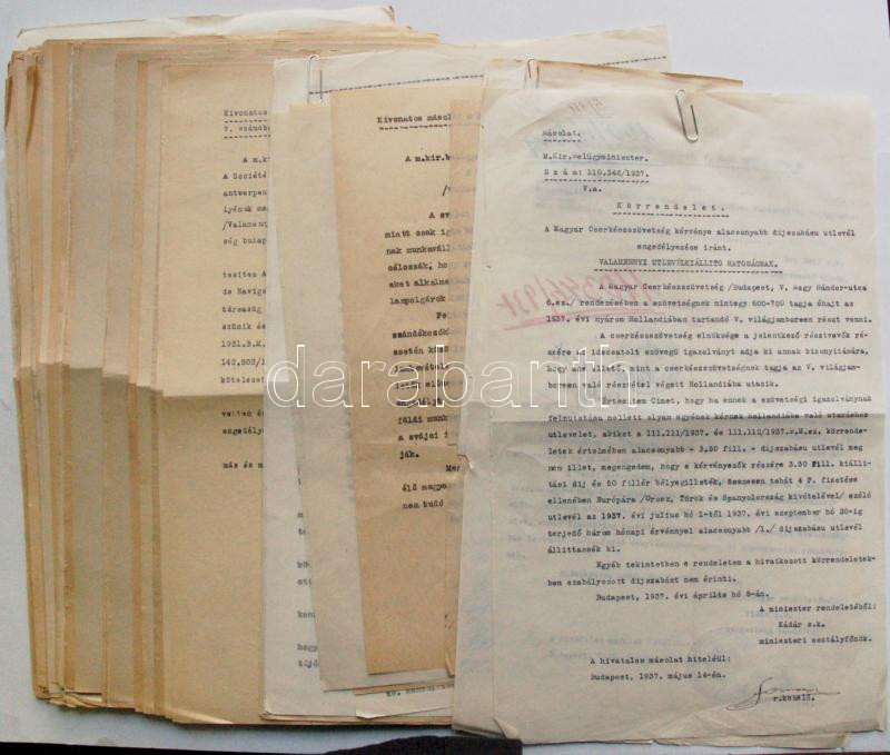 1930-as évek Belügyminisztérium hivatalos körlevelei, levelezése. Másolatok gyűjteménye, rendkívül érdekes tartalmú levelekkel, diplomáciai, külpolitikai vonatkozásokkal, érdekességekkel, összesen 72 db