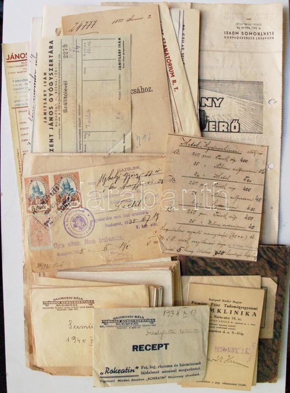 Leírás: cca 1920-1940 Orvosi okmányok, iratok, levelek kb 50 db