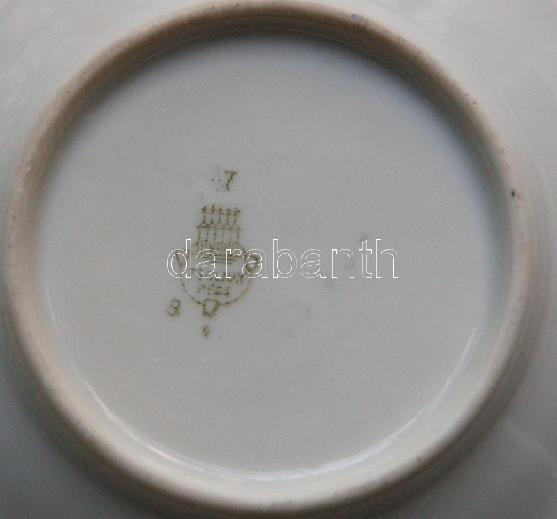 6 személyes kézzel festett virágmintás háború előtti pajzspecsétes sorszámozott Zsolnay süteményes készlet /