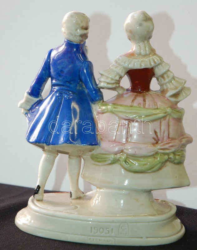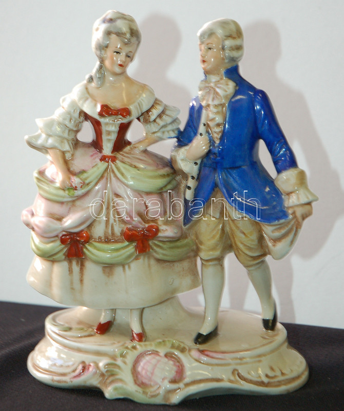 Leírás: Hölgy udvarlóval, kézzel festett, jelzett, sorszámozott porcelán szobrocska hibátlan állapotban /