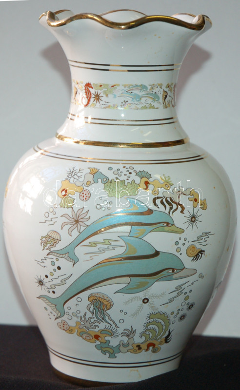 Leírás: Jelzett görög porcelán váza delfines díszítéssel /
