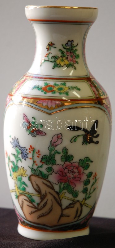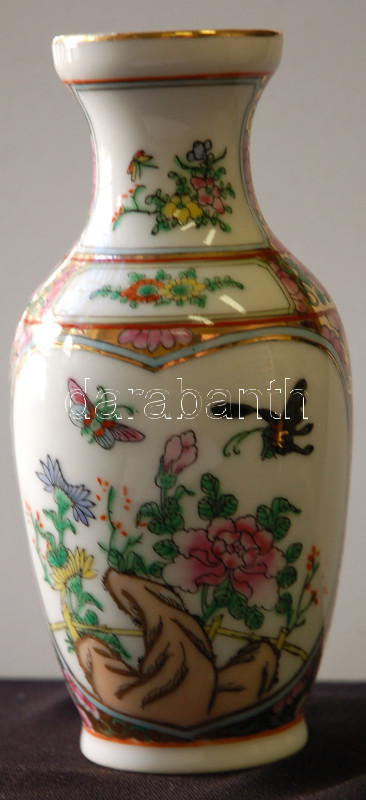 Leírás: Jelzett, kézzel festett kínai porcelán vázácska /