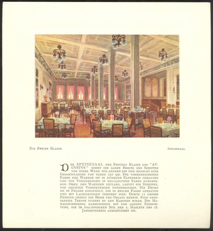 1927 Augustus tengerjáró hajó igényes reklám kiadványa 9db beltéri kép... https://www.darabanth.com/hu/163-Gyorsarveres/163.0/Festmeny-mutargy-papirregiseg-egyeb/Reklam~1600008/1927-Augustus-tengerjaro-hajo-igenyes-reklam-kiadvanya-9db-belteri-keppel-mappaban-19x21cm~II531259