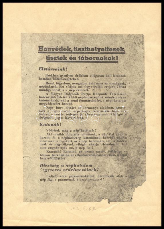 1956-os röplap papírlapra kasírozva https://www.darabanth.com/hu/163-Gyorsarveres/163.0/Festmeny-mutargy-papirregiseg-egyeb/Tortenelmi-dokumentumok-keziratok-erdekessegek~800044/1956-os-roplap-papirlapra-kasirozva~II532353