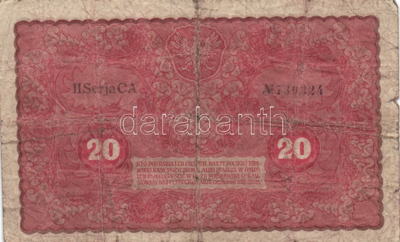 Poland 1919. 5 Marek + 10 Marek + 20 Marek + 100 Marek + 1000 Marek C:XF,F,VG