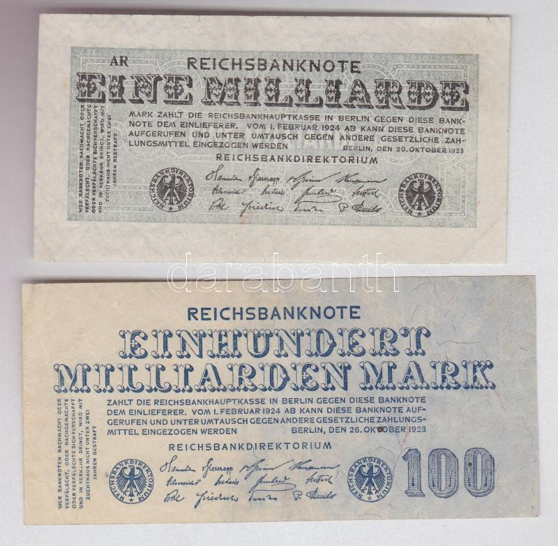 Leírás: Német Birodalom/Weimari Köztársaság/Berlin 1923.10.20. 1.000.000.000M + 1923.10.26. 100.000.000.000M T:II-