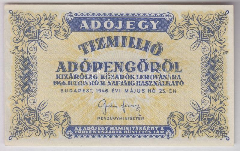 Leírás: 1946. 10.000.000AP vízjel nélküli papíron, eltolódott hátlapi nyomattal T:I