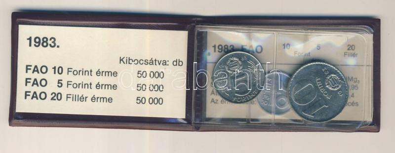 1983 "FAO" sor 20f, 5Ft, 10Ft eredeti plasztikcsomagolásban, tanúsítvá... https://www.darabanth.com/hu/163-Gyorsarveres/163.0/Numizmatika/Magyar-fem-es-ezustpenzek~1600132/1983-FAO-sor-20f-5Ft-10Ft-eredeti-plasztikcsomagolasban-tanusitvannyal-TBU~II529479