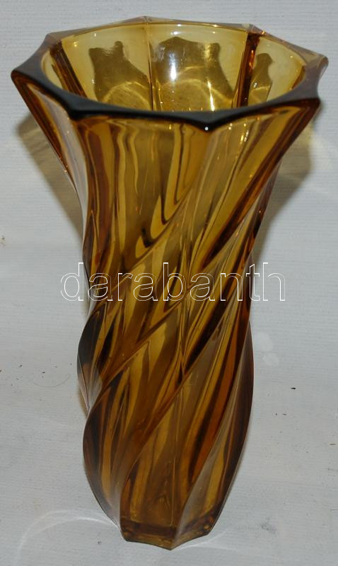 Leírás: Nagyméretű cseh sárga üveg váza 31cm