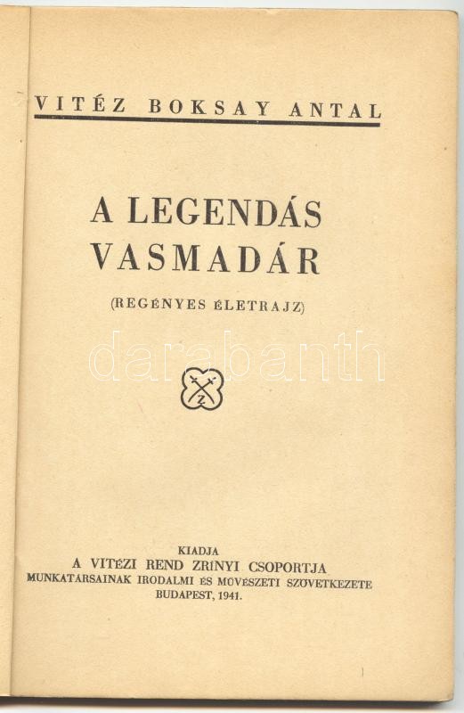 vitéz Baksay Antal: A legendás vasmadár - Ittebei Kiss József, a legjobb magyar vadászrepülő élete, Zrínyi Nyomda, papírkötésben, regényes életrajz képekkel