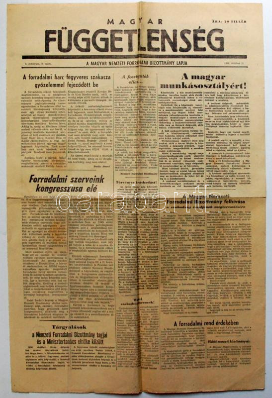 1956 Népszava c. folyóirat október 29. és Magyar Függetlenség c. folyó... https://www.darabanth.com/hu/164-Gyorsarveres/164.0/Festmeny-mutargy-papirregiseg-egyeb/Nyomtatvanyok~500026/1956-Nepszava-c-folyoirat-oktober-29-es-Magyar-Fuggetlenseg-c-folyoirat-oktober-31-szam~II537254