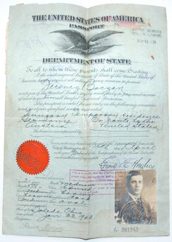 1924 Amerikába kivándorolt magyar férfi fényképes útlevele https://www.darabanth.com/hu/164-Gyorsarveres/164.0/Festmeny-mutargy-papirregiseg-egyeb/Okmanyok~500015/1924-Amerikaba-kivandorolt-magyar-ferfi-fenykepes-utlevele~II541140