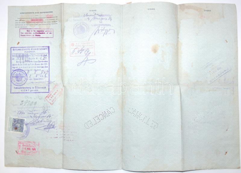 Leírás: 1924 Amerikába kivándorolt magyar férfi fényképes útlevele