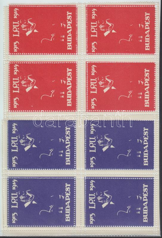 Leírás: 1913-1914 IPU levélzáró négyestömb kék és piros színben