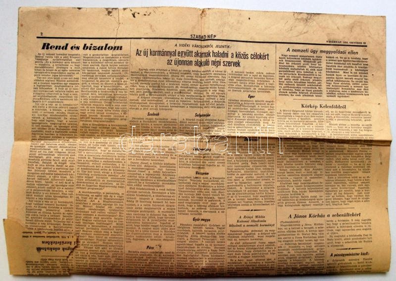 1956 október 28. és 29. Szabad Nép c. folyóirat száma a forradalom híreivel és az új nemzeti kormány tagjainak a névsorával, Nagy Imre rádiónyilatkozatával