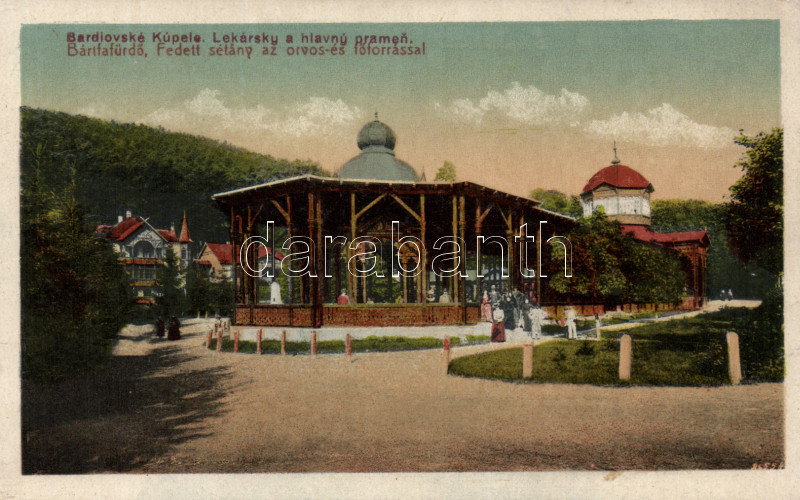 Bártfafürdő fountain, covered promenade https://www.darabanth.com/hu/164-Gyorsarveres/164.0/Kepeslapok/Felvidek~2000007/Bartfafurdo-fountain-covered-promenade~II540286