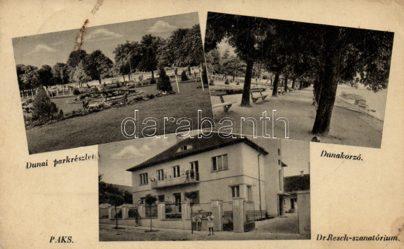 Paks Dr. Resch szanatóriuma, Duna-korzó https://www.darabanth.com/hu/164-Gyorsarveres/164.0/Kepeslapok/Magyarorszag~2000005/Paks-Dr-Resch-szanatoriuma-Duna-korzo~II523402