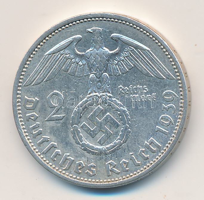 German Third Reich 19... https://www.darabanth.com/hu/164-Gyorsarveres/164.0/Numizmatika/Kulfoldi-fem-es-ezustpenzek~2000106/Nemet-3-Birodalom-1939A-2M-Ag-Hindenburg-T2--3Cbr3EGerman-Third-Reich-1939A-2-Marks-Ag-Hindenbu~II539473