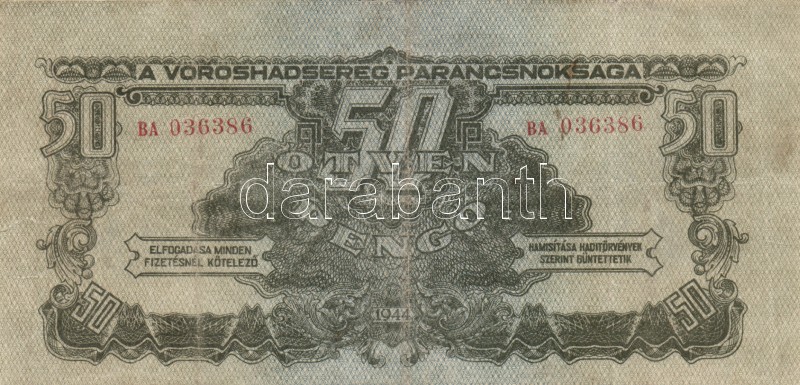 1944. "Vöröshadsereg Parancsnoksága" 1P + 2P + 5P + 50P + 1984-1992. 1... https://www.darabanth.com/hu/164-Gyorsarveres/164.0/Numizmatika/Magyar-es-magyar-vonatkozasu-bankjegyek~2000101/1944-Voroshadsereg-Parancsnoksaga-1P-plus-2P-plus-5P-plus-50P-plus-1984-1992-100Ft-3x-TII-III~II542570