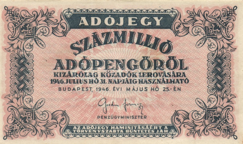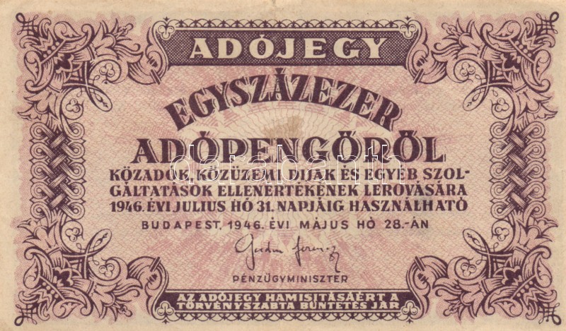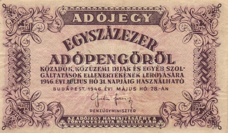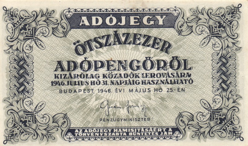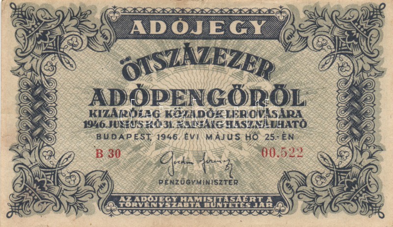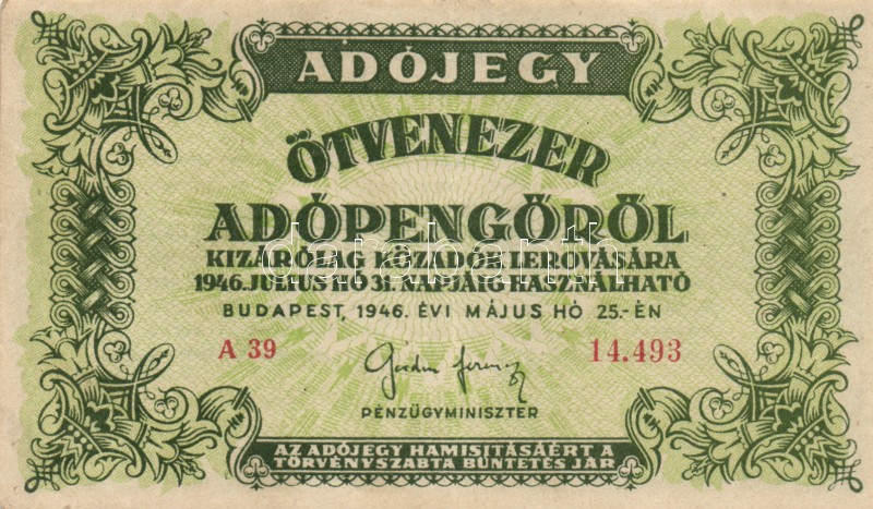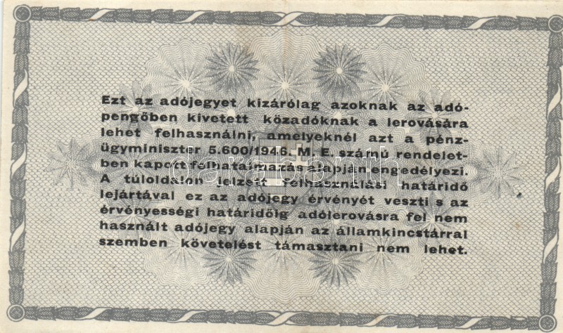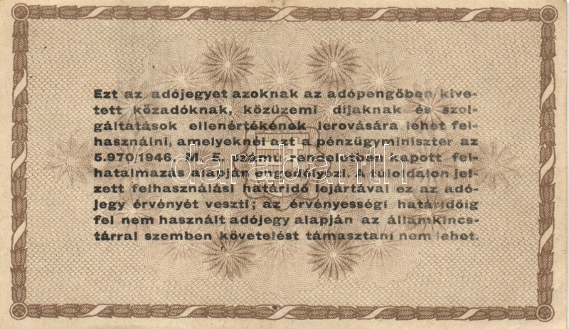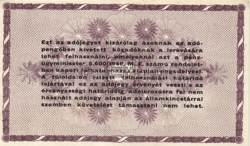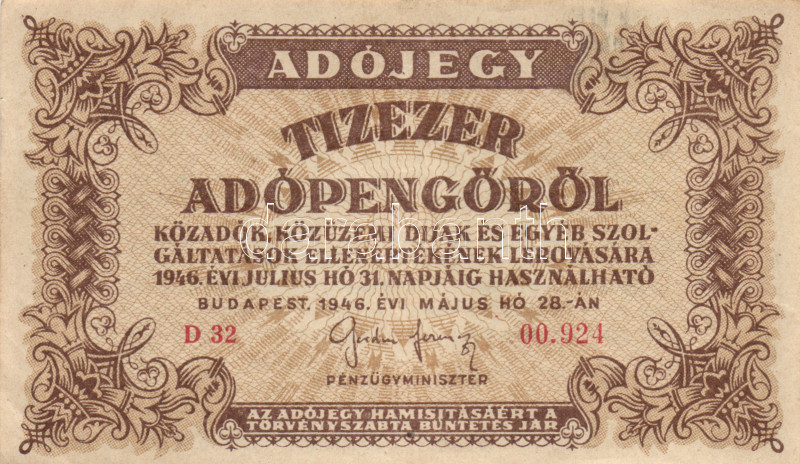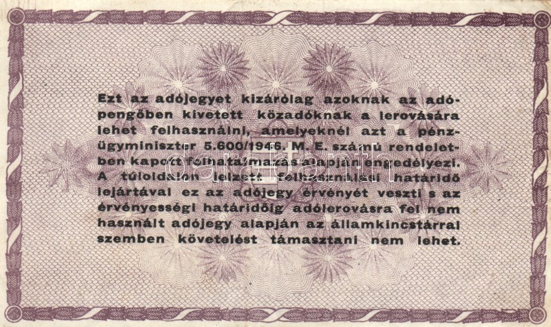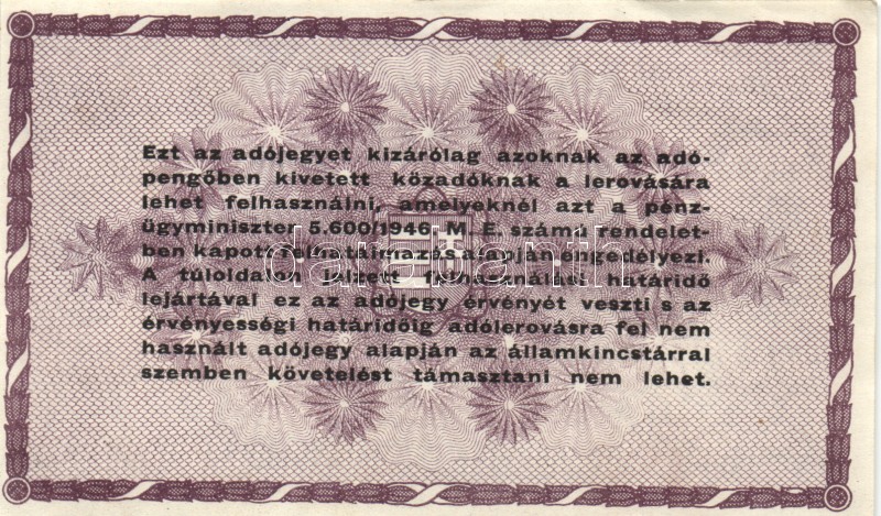 Leírás: 1946. 10.000AP + 50.000AP + 100.000AP (5x) kétféle papír + 500.000AP (3x) kétféle papír + 100.000.000AP T:I-,II,III