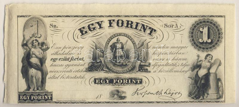 Emigrációs "Kossuth-bankó" 18.. 1Ft "Sor A." T:I https://www.darabanth.com/hu/164-Gyorsarveres/164.0/Numizmatika/Magyar-es-magyar-vonatkozasu-bankjegyek~2000101/Emigracios-Kossuth-banko-18-1Ft-Sor-A-TI~II282270