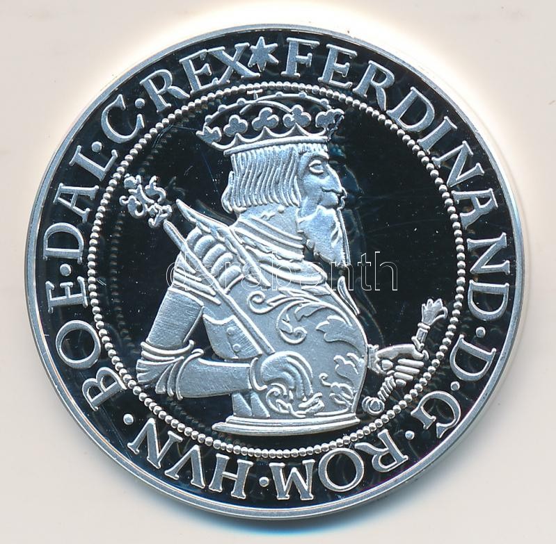 Leírás: Magyar tallérok utánveretben "I. Ferdinánd tallérja 1554." Ag (0,999) 20g T:PP Tanúsítvánnyal, csak 2000db!