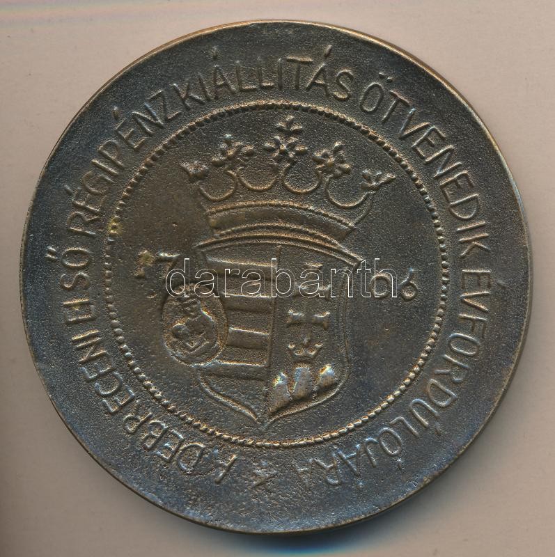 Leírás: Nagy József (Debrecen) 1978. "A Debreceni Első Régipénz Kiállítás Ötvenedik Évfordulójára" nagyalakú Br emlékérem (90mm) T:2