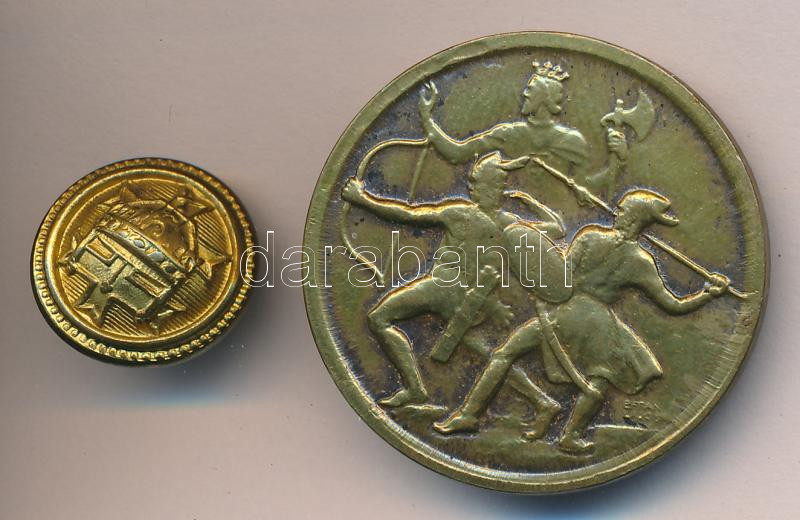 Leírás: 1943. "Országos Leventeverseny" Br emlékérem (32mm) + 1db "Superieur" katonai gomb koronával és kettős kereszttel T:2
