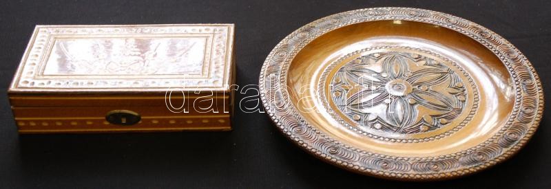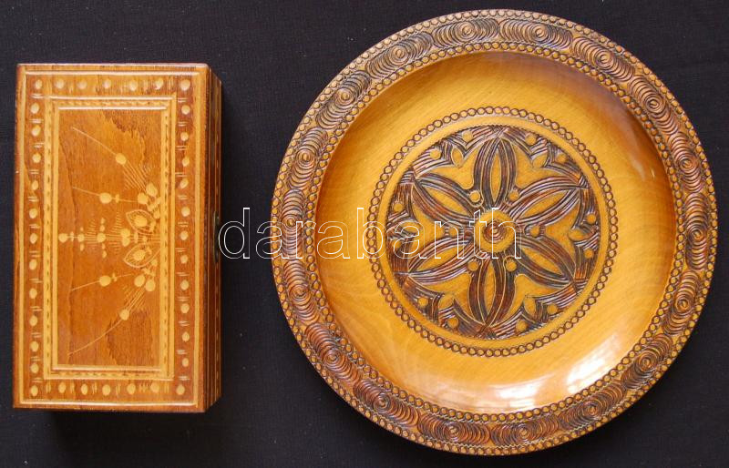 Leírás: Díszes fadoboz és fatányér /