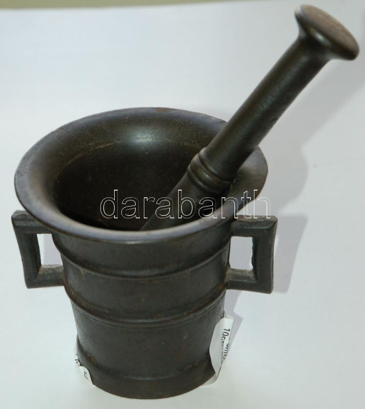 Leírás: Kis öntöttvas mozsár törővel kis sérüléssel, 10cm magas