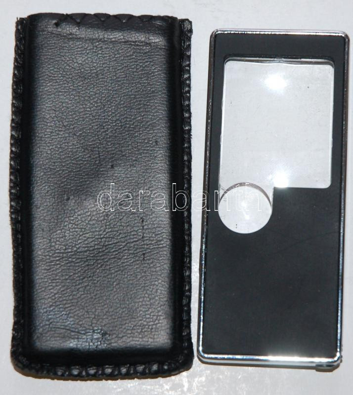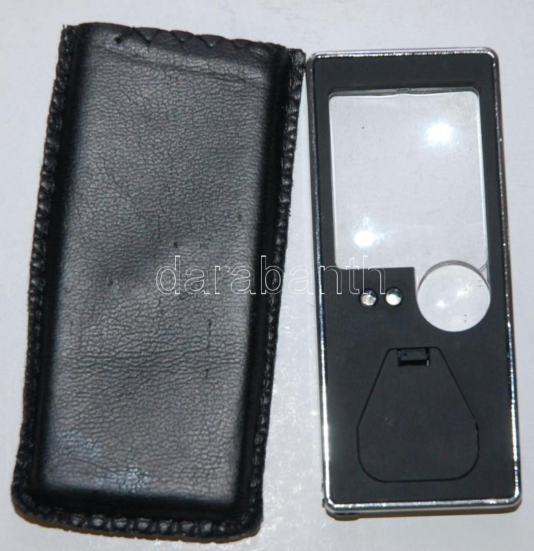 Leírás: Kisméretű nagyító UV-lámpával és 4 LED-del bőrtokban /