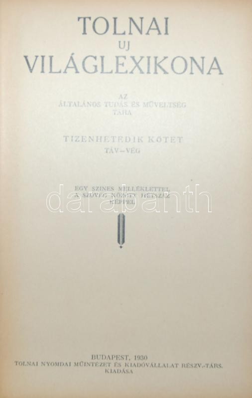1926 Tolnai Világlexikon I.-XVIII. kötet teljes sorozat, pótkötettel! ... https://www.darabanth.com/hu/165-Gyorsarveres/165.0/Festmeny-mutargy-papirregiseg-egyeb/Konyvek-Egyeb-ritkasagok~900031/1926-Tolnai-Vilaglexikon-I-XVIII-kotet-teljes-sorozat-potkotettel-Minden-kotet-jo-allapot~II546996