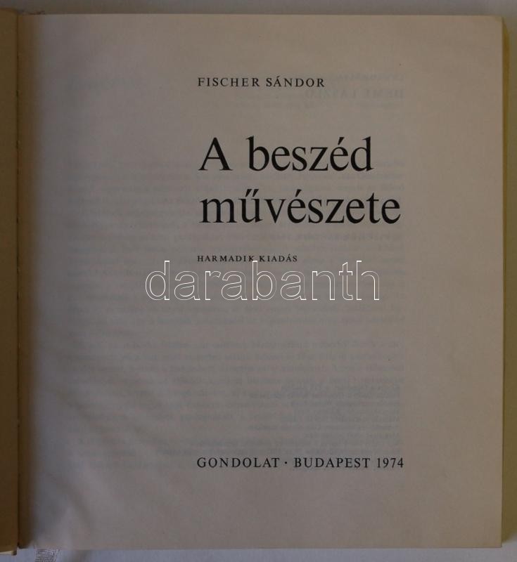 Fischer Sándor: A beszéd művészete. Bp., 1974, Gondolat. Kiadói egészv... https://www.darabanth.com/hu/165-Gyorsarveres/165.0/Festmeny-mutargy-papirregiseg-egyeb/Konyvek-Egyeb-ritkasagok~900031/Fischer-Sandor-A-beszed-muveszete-Bp-1974-Gondolat-Kiadoi-egeszvaszon-kotesben-mellC3~II547809