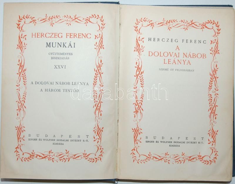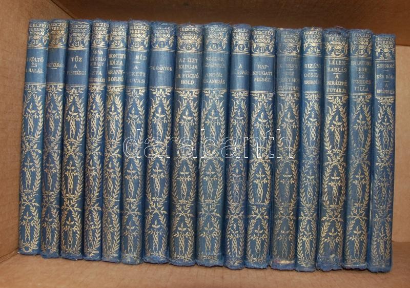 Herczeg Ferenc Munkái Gyüjteményes Díszkiadás. Bp., 1925, Singer és Wolfner. 17 kötet a teljes sorozatból. Kiadói aranyozott egészvászon kötésben a Lantos Rt. Könyvkötészetből, kissé kopottas, de jó állapotban